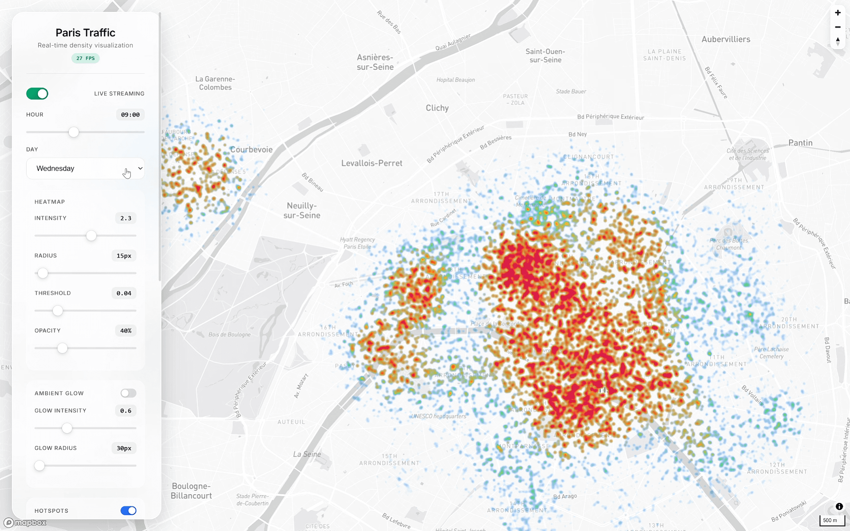 – DeckGL with WebGL shaders for rendering 17,000+ dynamic points in real-time