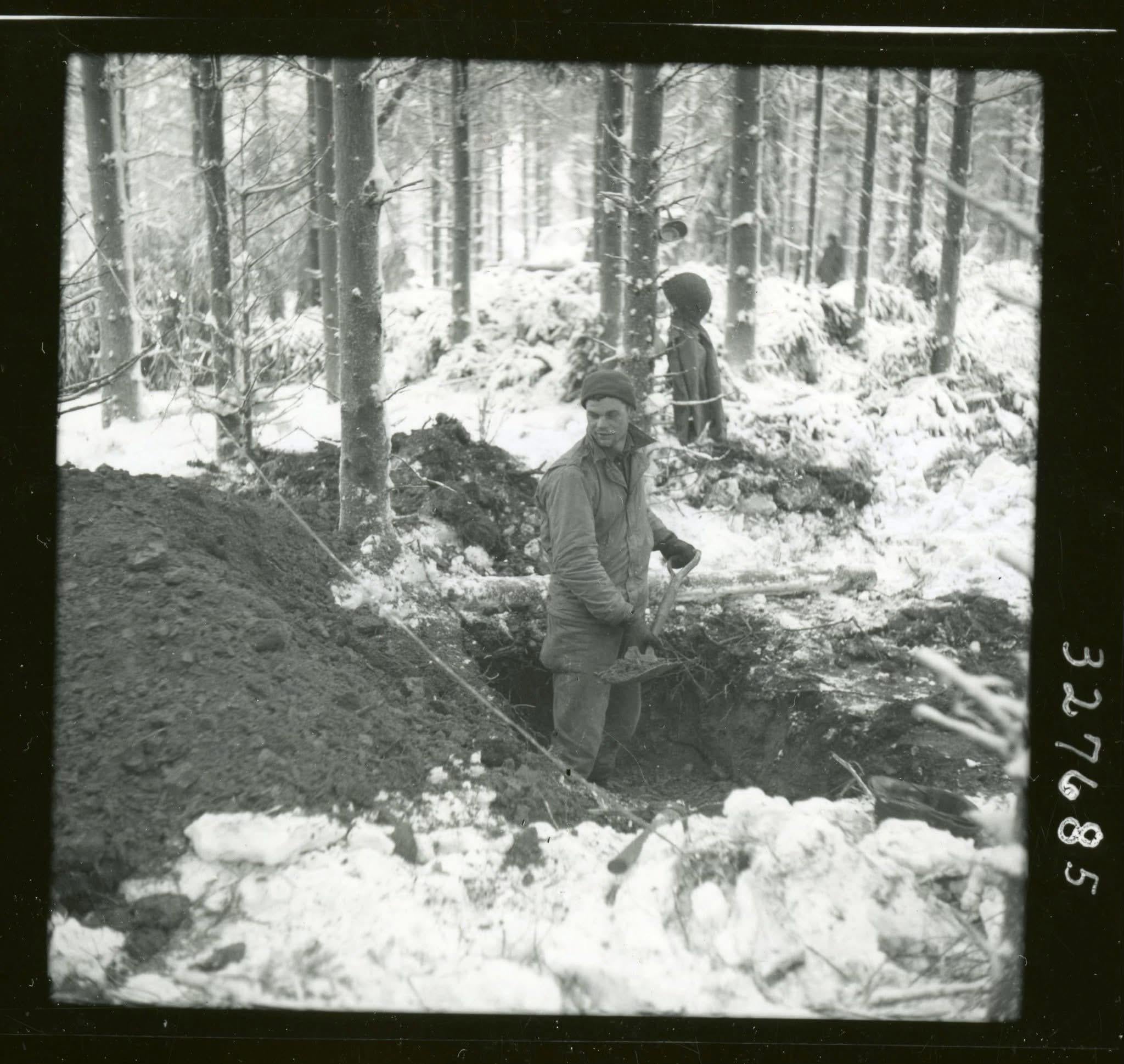 Cpl. Roy Jordan digs in for the night in frozen ground of the Ardennes Forest during the Battle of the Bulge, December 1944. [2048×1938] by UrbanAchievers6371