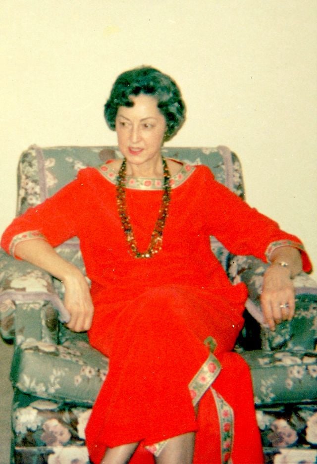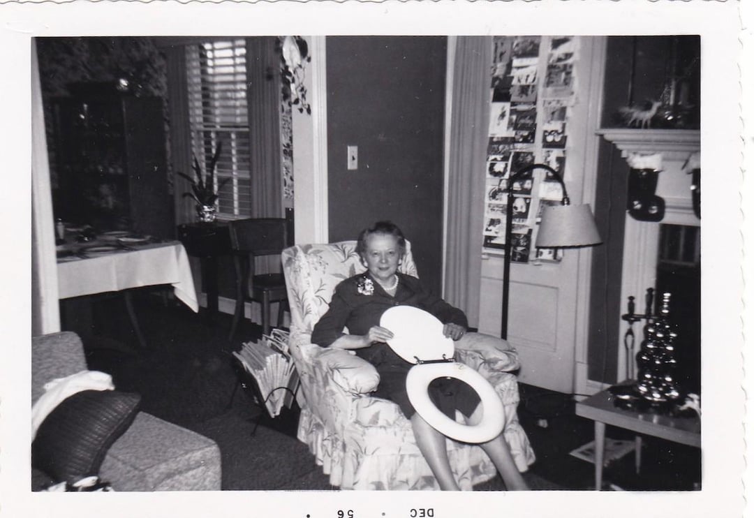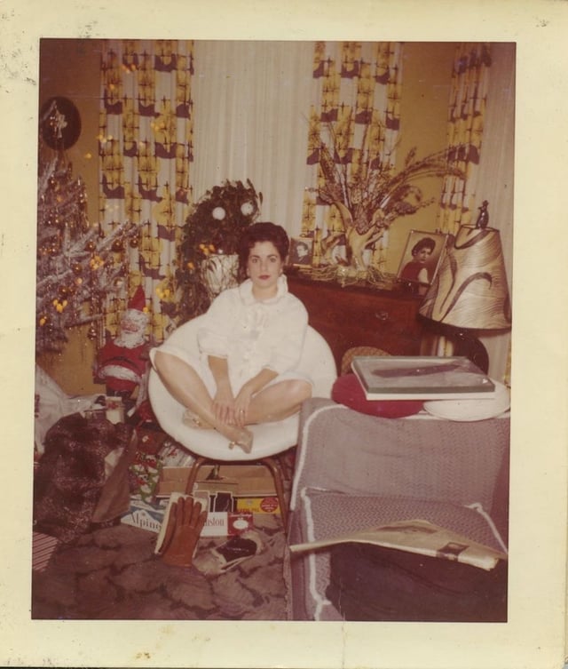 December 19, 2025Lady poses in a nice red dress in front of her christmas tree, and TV set, circa late 1950s.