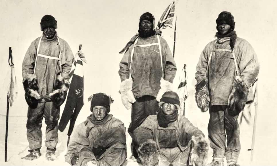 Scott South Pole Expedition, arrived 4 weeks after Roald Amundsen (L-R): Capt. Lawrence Oats, Lt. Henry Bowers, Capt. Robert Scott, Dr. Edward Wilson, PO Edgar Evans. All five would succumb attempting return to base camp. 17 January 1912. South Pole, Antarctica [960×580]