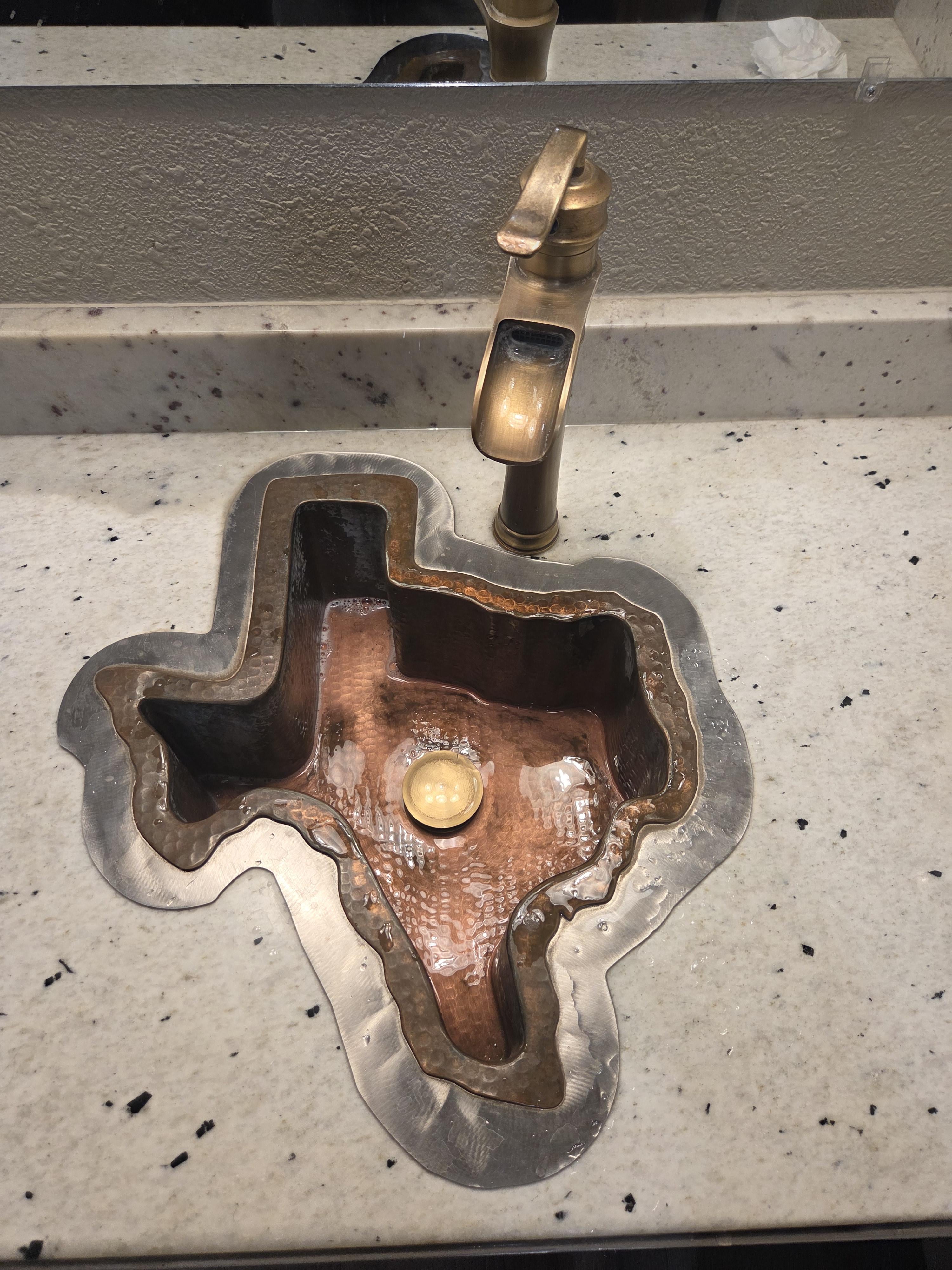 Ironically tiny sink. Not “Texas-sized” at all, lol