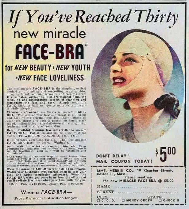 Seems like a good idea At the time? Well it’s still a thing. check it out. https://www.thecut.com/2013/10/curious-world-of-face-bras-an-investigation.html by Karren_H