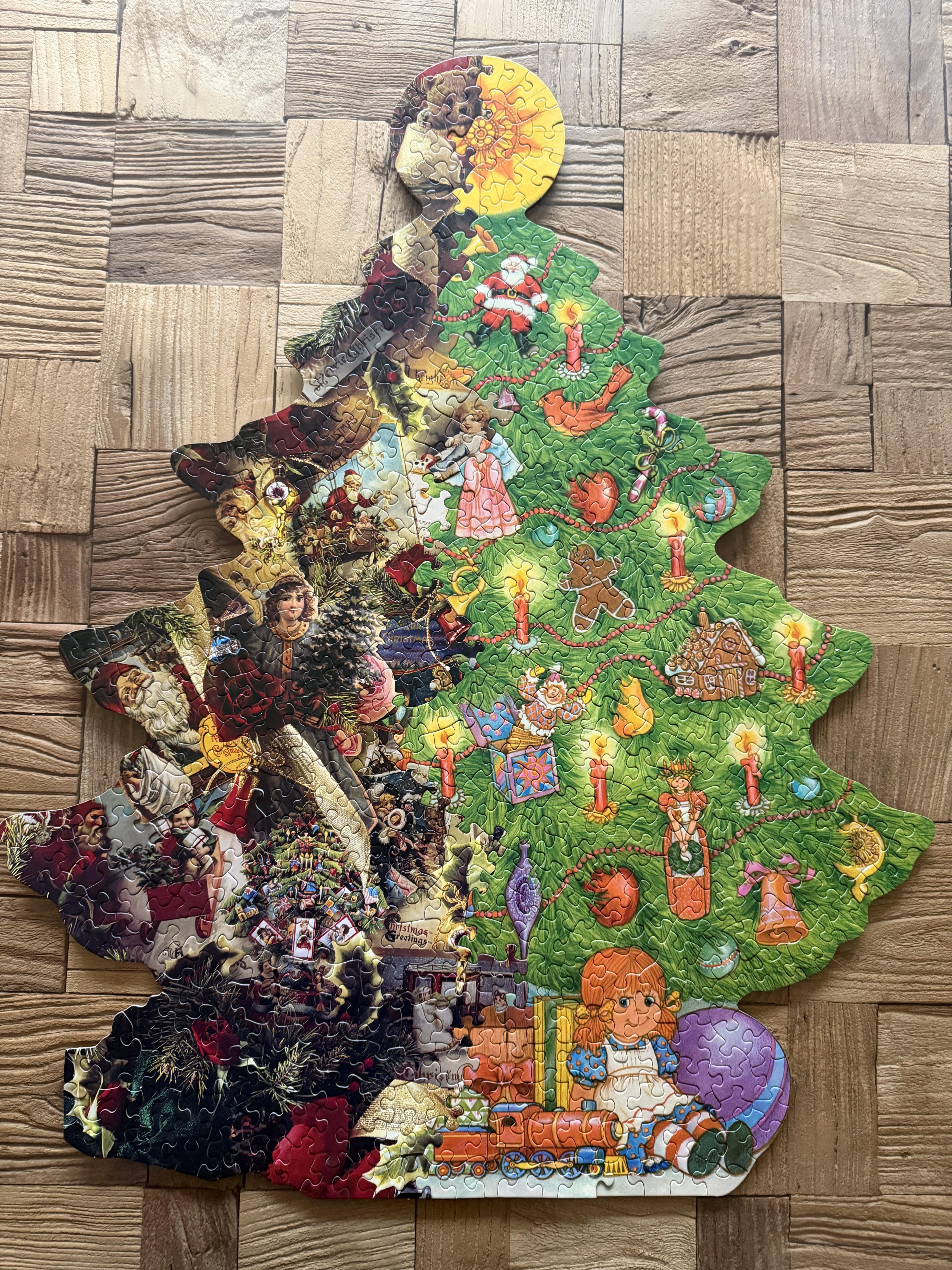 Since jigsaw puzzle companies sometimes reuse the same cutting pattern with different pictures, you can combine them to create hybrid-picture puzzles that are technically complete!