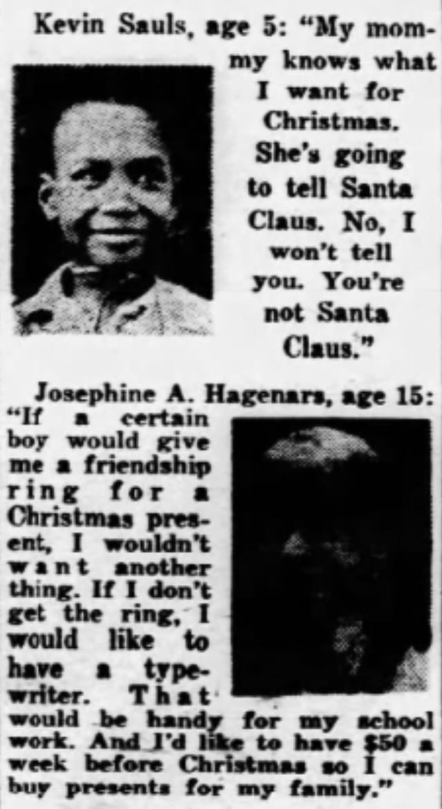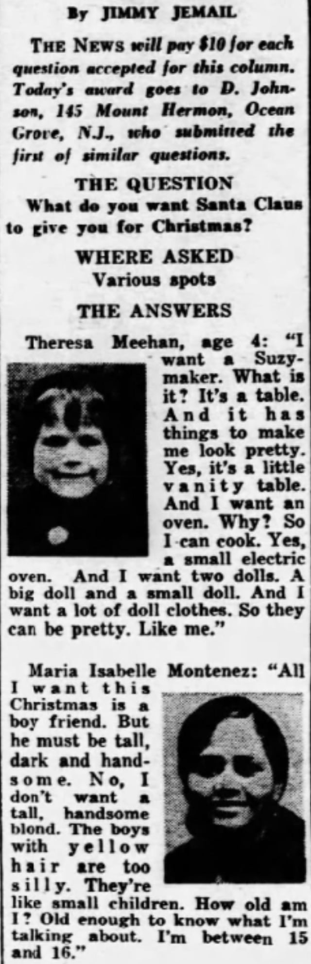 Inquiring Photographer: “What do want Santa Claus to give you for Christmas?” December 18th,1967.
