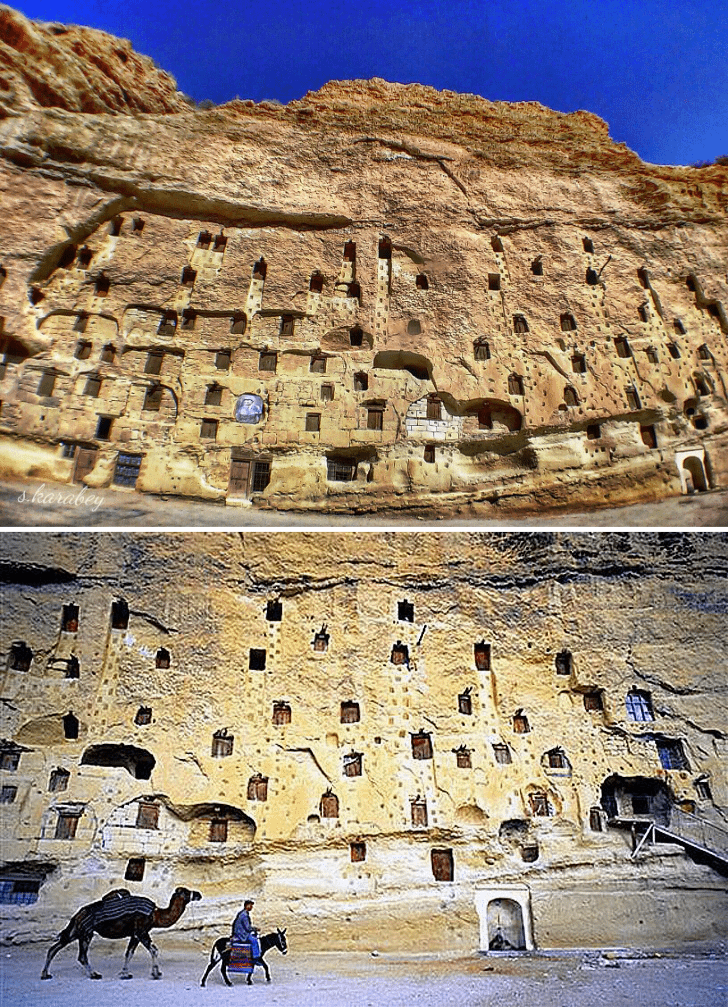 800-year-old granaries carved into the interior of a high rock cultured clayey limestone in the Taşkale village of Karaman, in Turkey [728×1007] by Fuckoff555