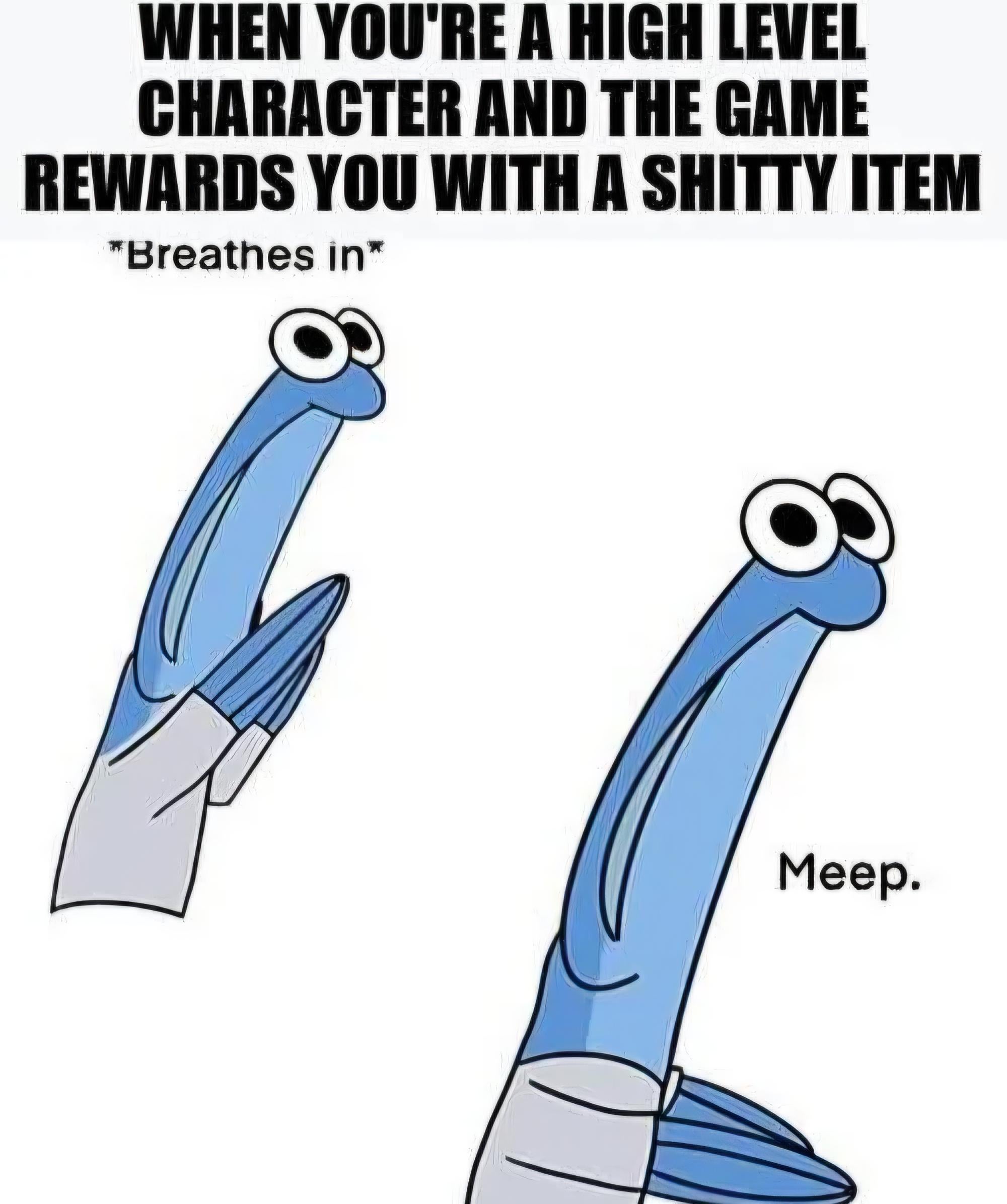 Goldeneye0X1_ on December 20, 2025 5:43 pm The most insulting one I can think of is the reward for finishing the great bug farm for the Scepter Questline. You spend DAYS sitting in a cave killing respawning bugs getting fragments 1-4 at a time until you have 42,000 of them. Your immediate reward is a ring that is an undisputed downgrade for your expected level of gear. This is WoW btw.