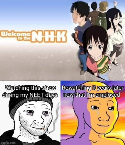 I watched it last year. Even though I’ve never hit true NEET-hood, I could feel some aspect of the anime hitting quite close to home. I was and still am on both sides of this meme 😎