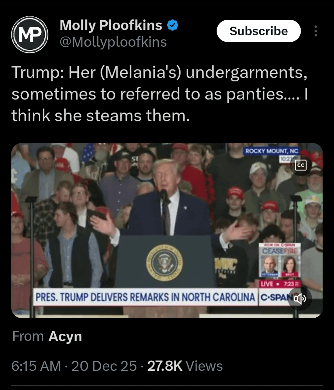 Trump’s speech on the economy turned into Melania’s panties.