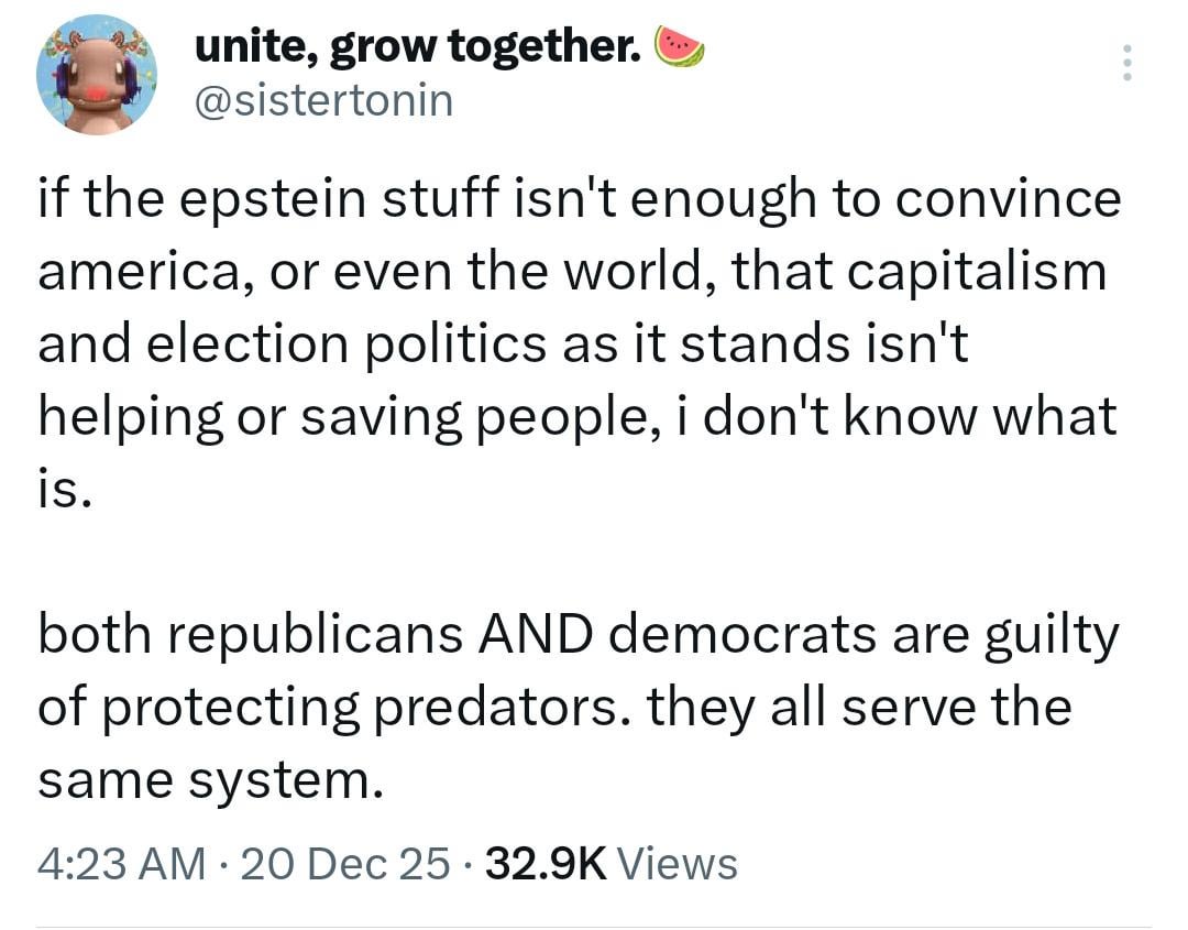 “democracy is bad, because the democrats and epstein” warm-water-port-ass post