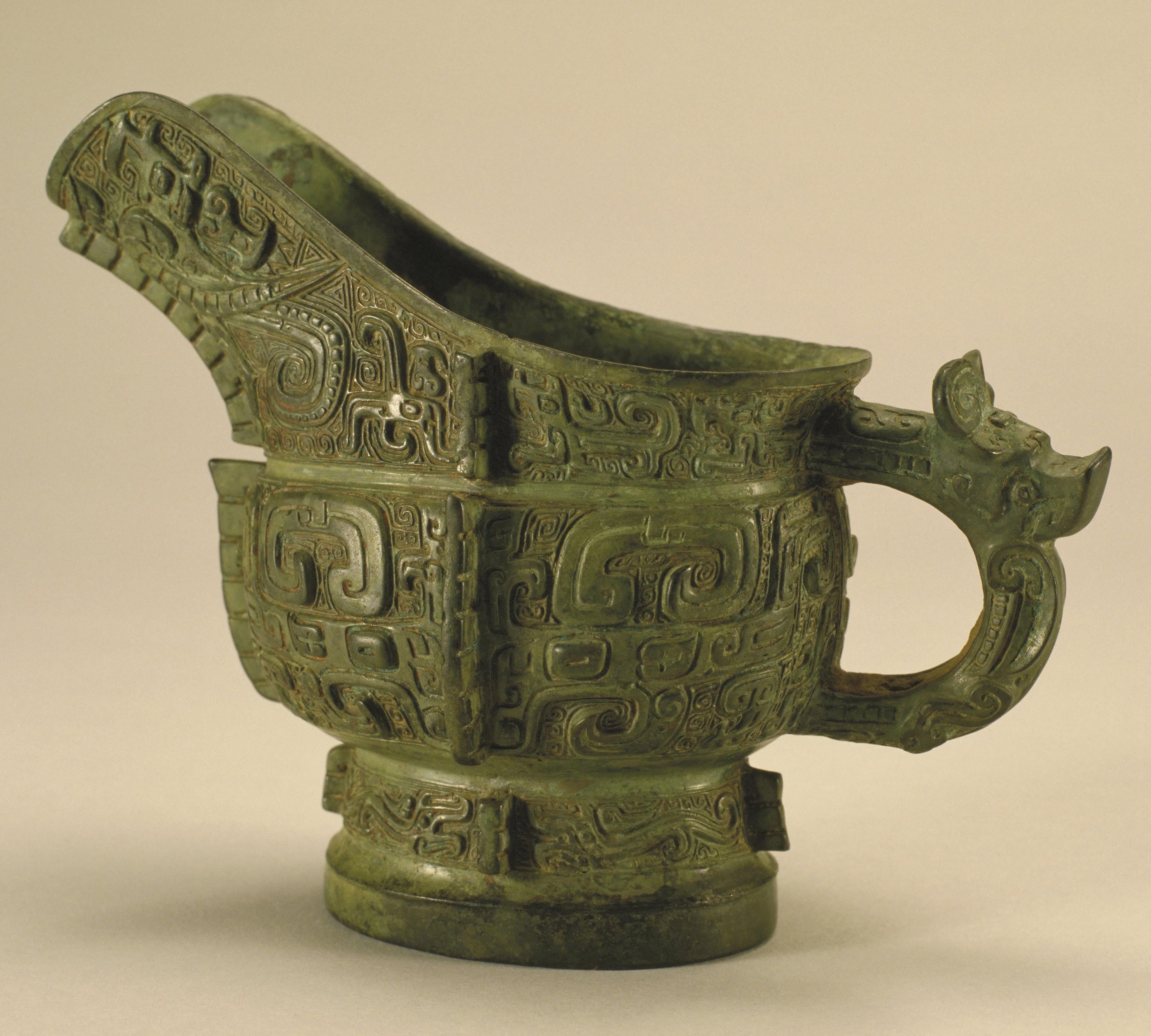 Bronze wine pitcher with animal mask patterns. Lid missing. China, Shang dynasty, 1200-1000 BC [3600×3240] by MunakataSennin