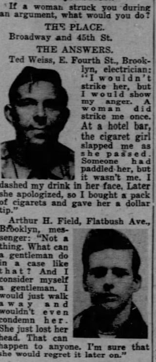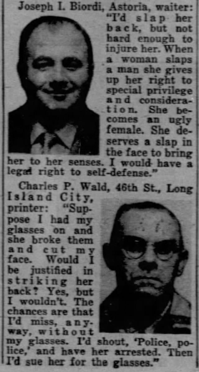 Inquiring Photographer:”If a woman struck you during an argument, what would you do?” December 18,1951. by CryptographerKey2847
