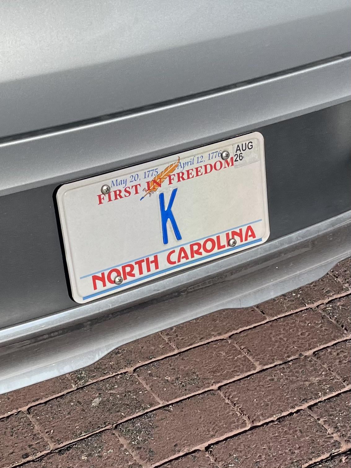 Karolina allows personalized plates with up to 8 letters or numbers. The only NCDOT requirement is that it must contain at least one letter. They do not allow G I O Q or U to be used.
