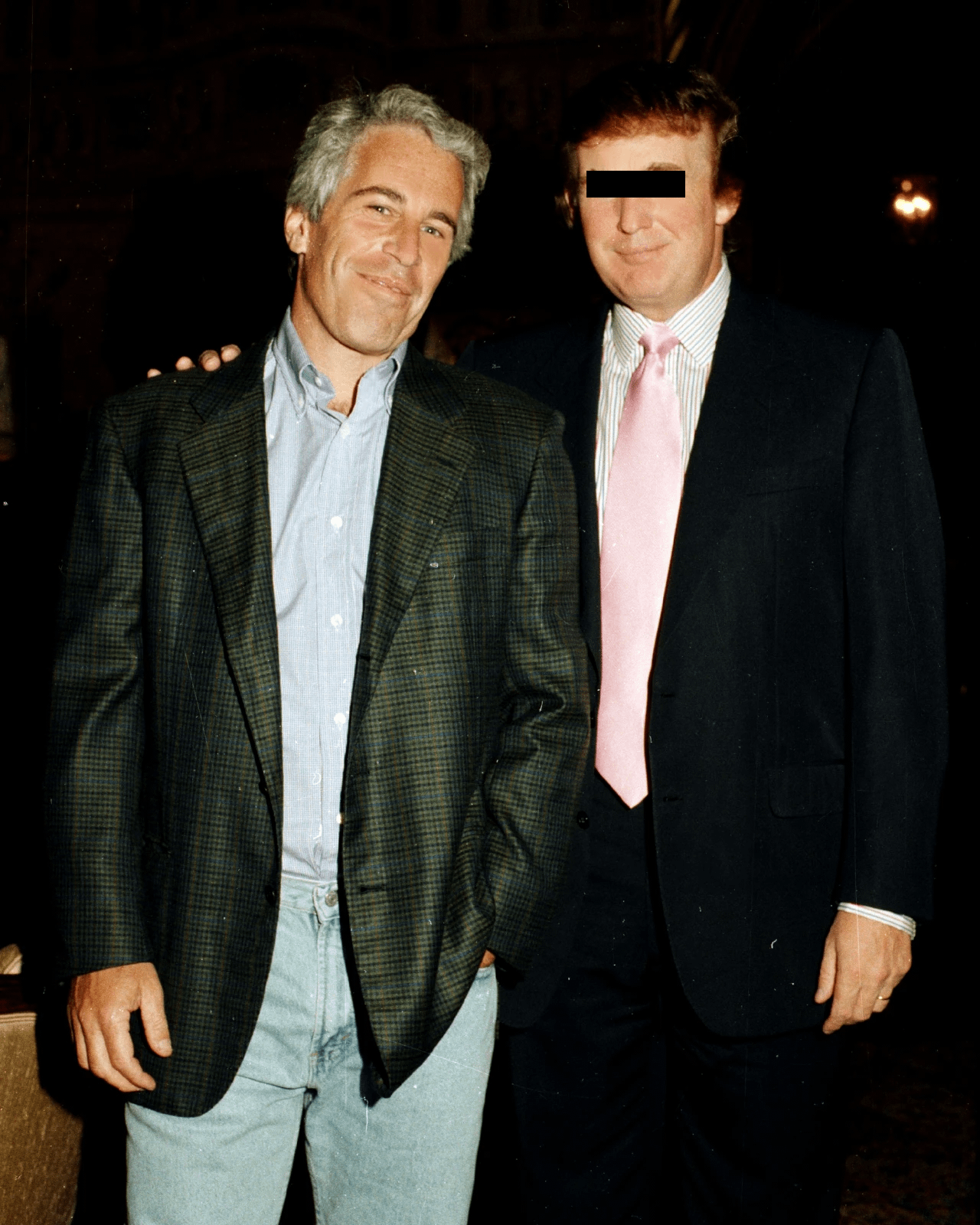 I can’t make out who Epstein is with in that photo. Can anyone else? That black bar is covering to much details.
