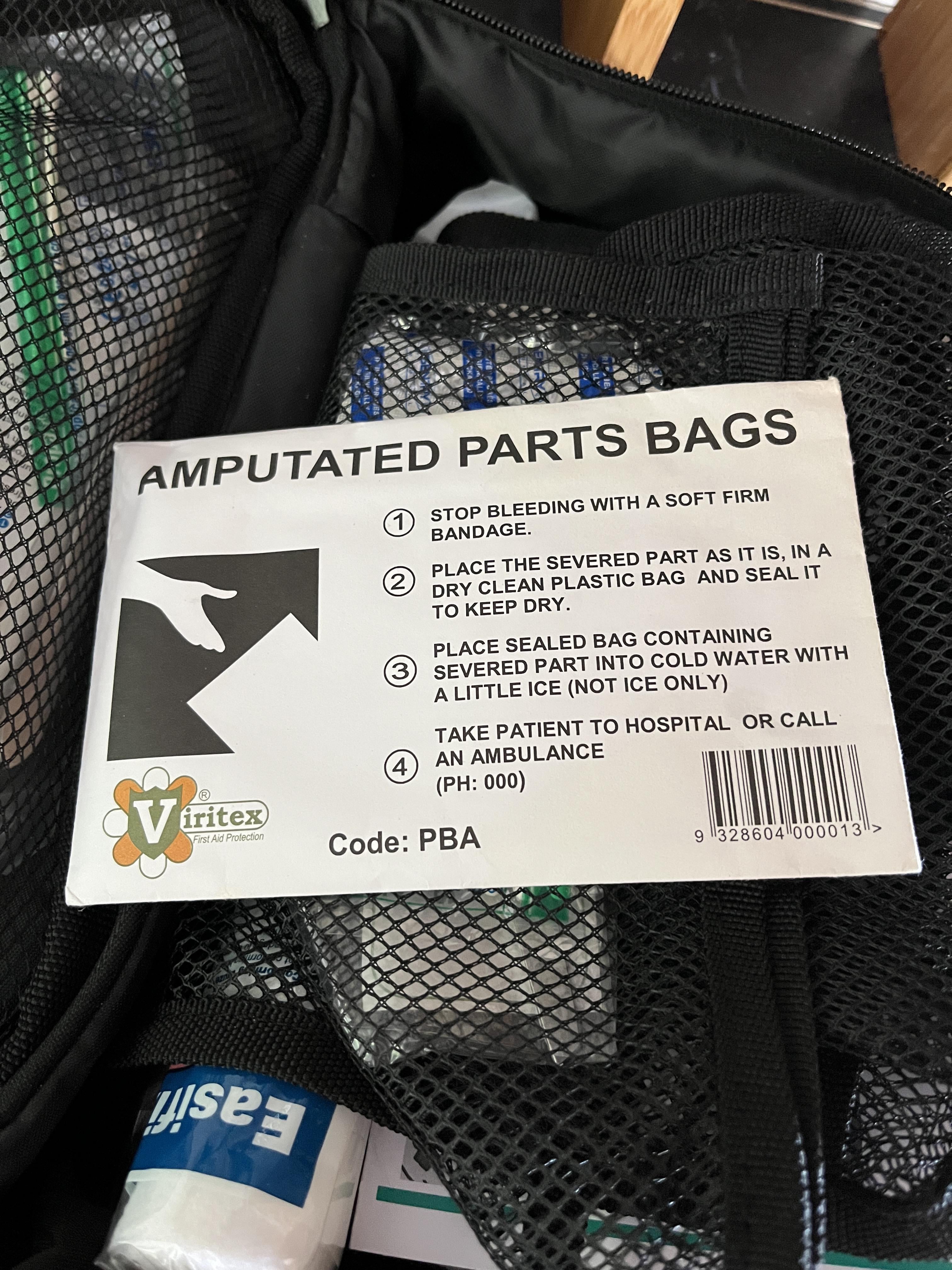 My First Aid Kit contains ‘Amputated Parts Bags’