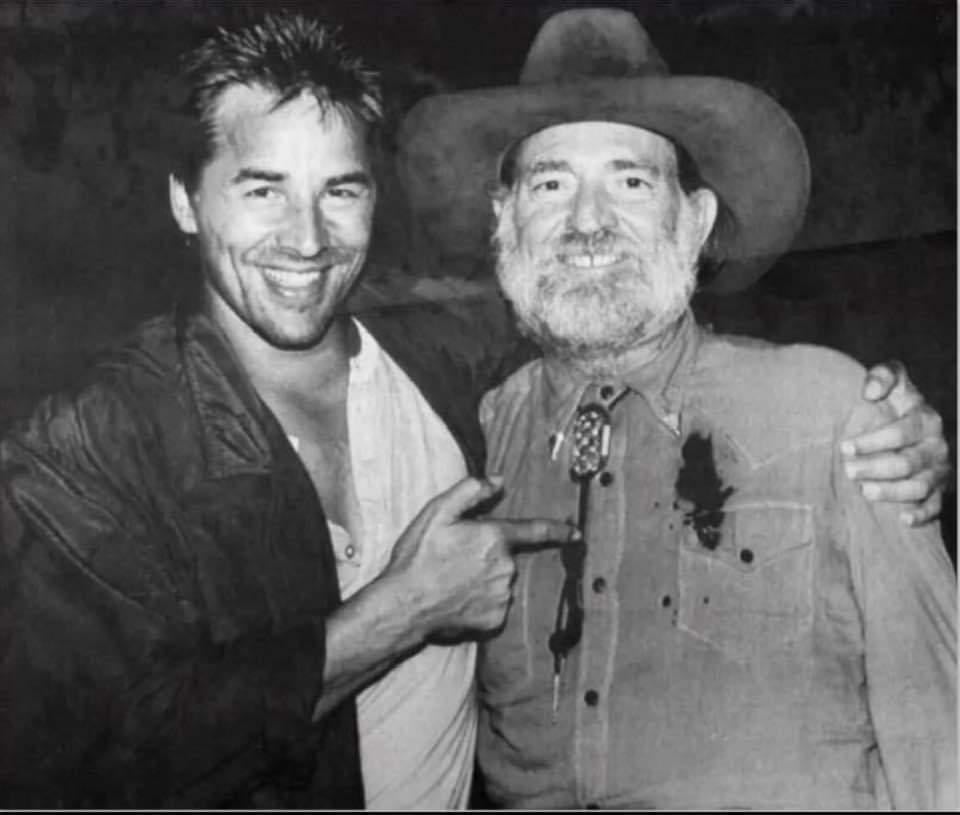 Don Johnson and Willie Nelson during a shoot of an episode of ‘Miami Vice’, 1986