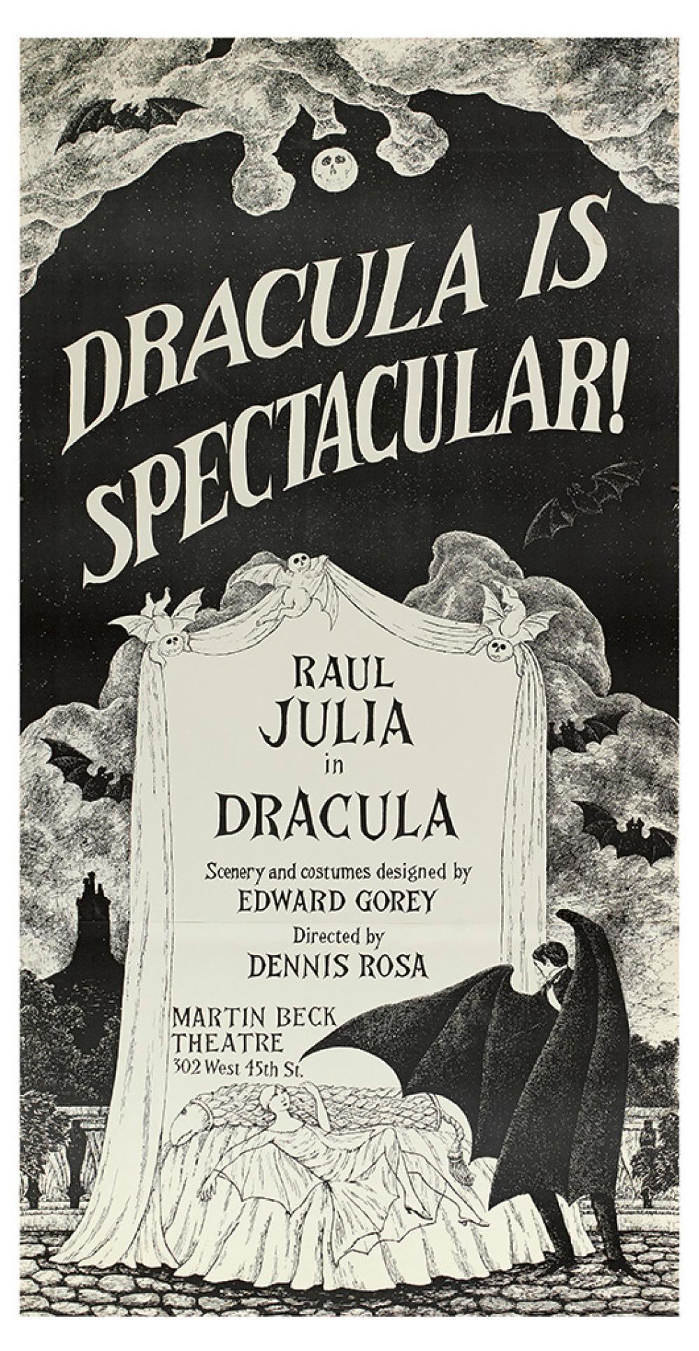“Dracula Is Spectacular!” 1977 poster featuring Raul Julia in the Edward Gorey stage production of Dracula. by WhoIsTheAleMan