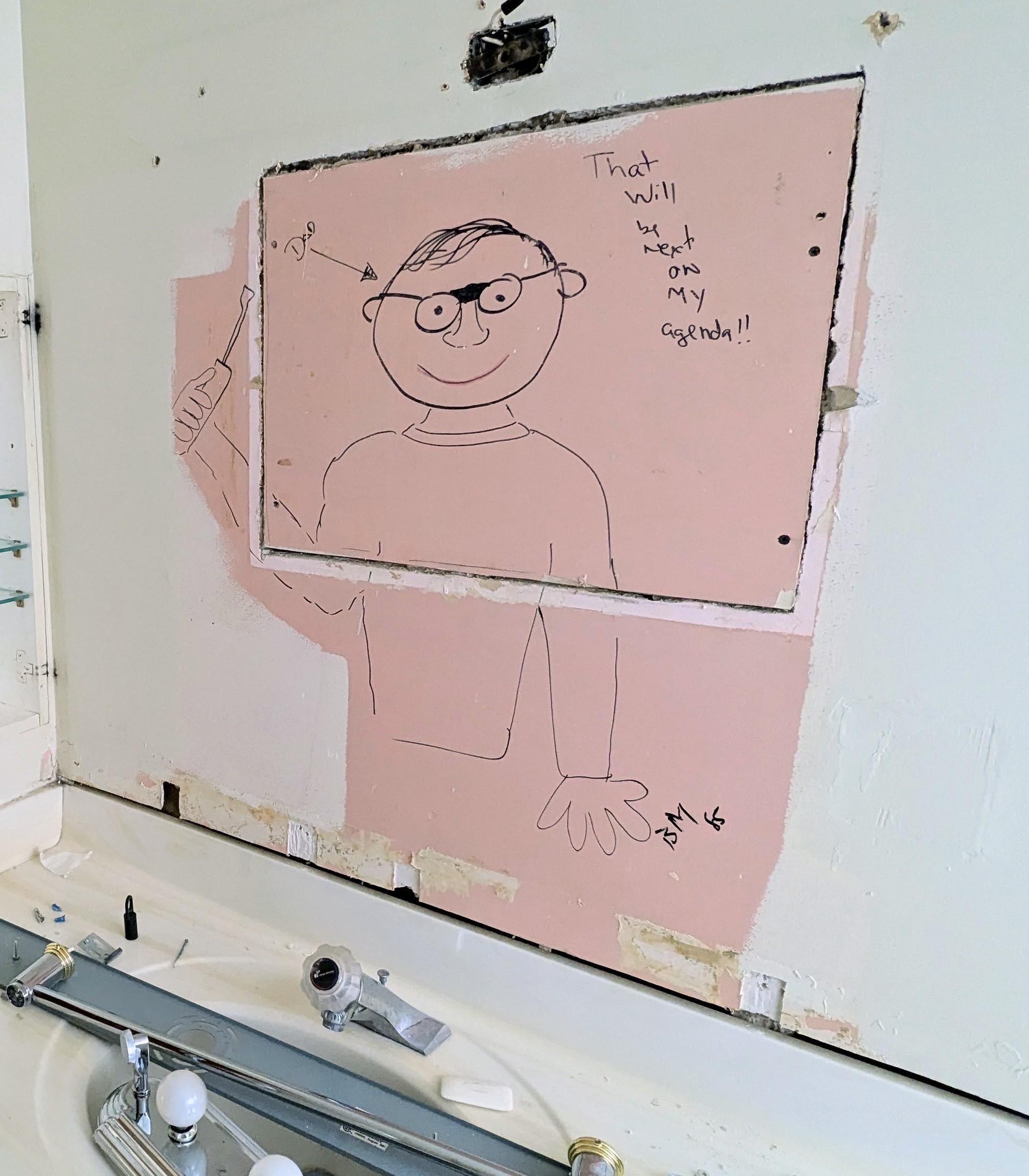 The note makes it even better. Imagine being the person who drew this and knowing it finally got discovered decades later during a renovation.