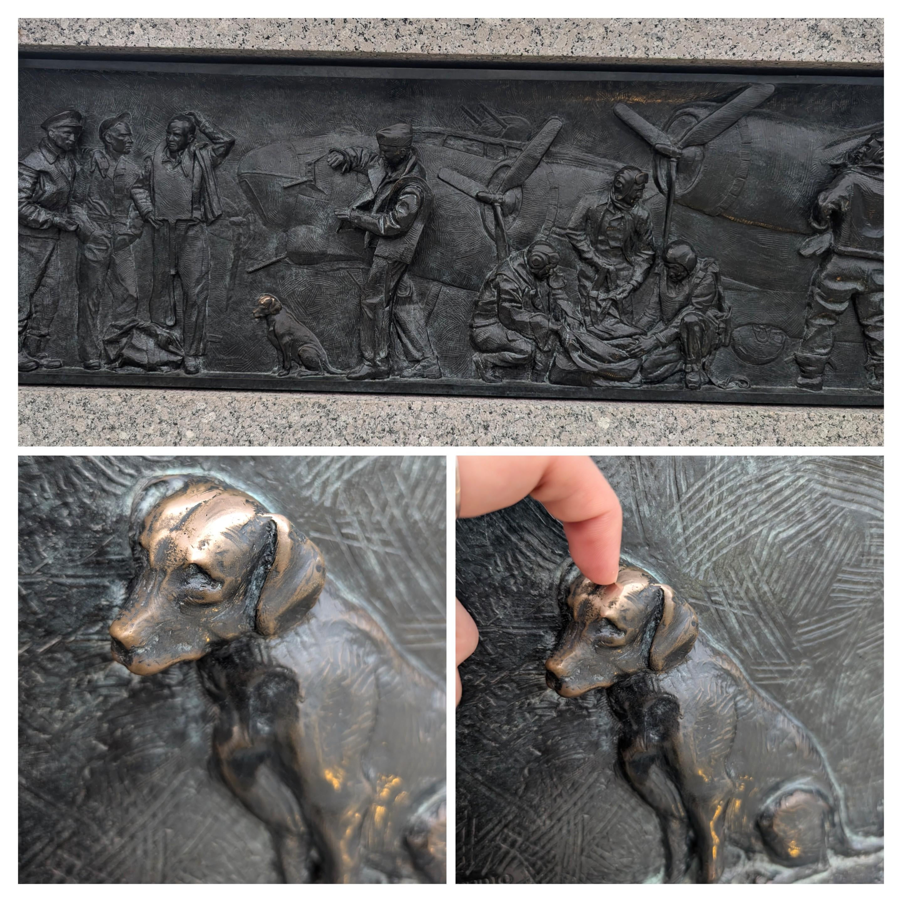 I visited the WW2 Memorial at DC and noticed on one bronze panel that petina on the dog’s head was worn away from constantly being pet over the decades.
