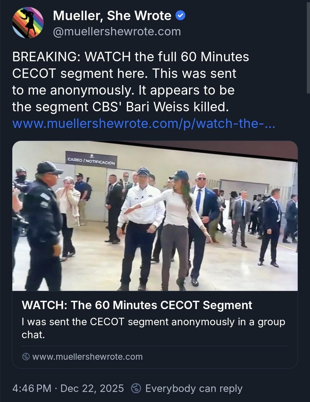 [https://www.muellershewrote.com/p/watch-the-60-minutes-cecot-segment](https://www.muellershewrote.com/p/watch-the-60-minutes-cecot-segment)