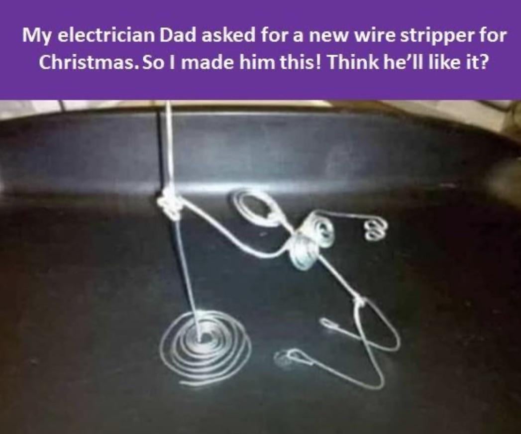 [My dad, an electrician, asked for a new wire stripper for Christmas. So I made him this. : r/pics](https://www.reddit.com/r/pics/comments/1s4ffl/my_dad_an_electrician_asked_for_a_new_wire/)