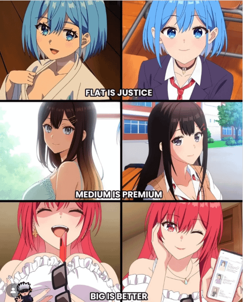 3. Anime boob cup sizes are like American drink cup sizes. Small is medium, medium is large, large is gigantic.