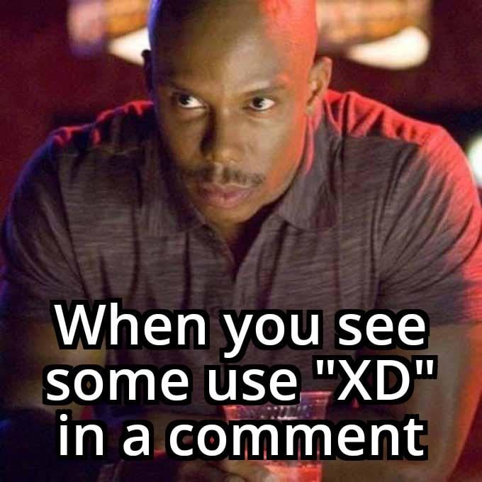 I frequently use xD to show I mean my message non attacking, pls tell me what am I? Like fr?