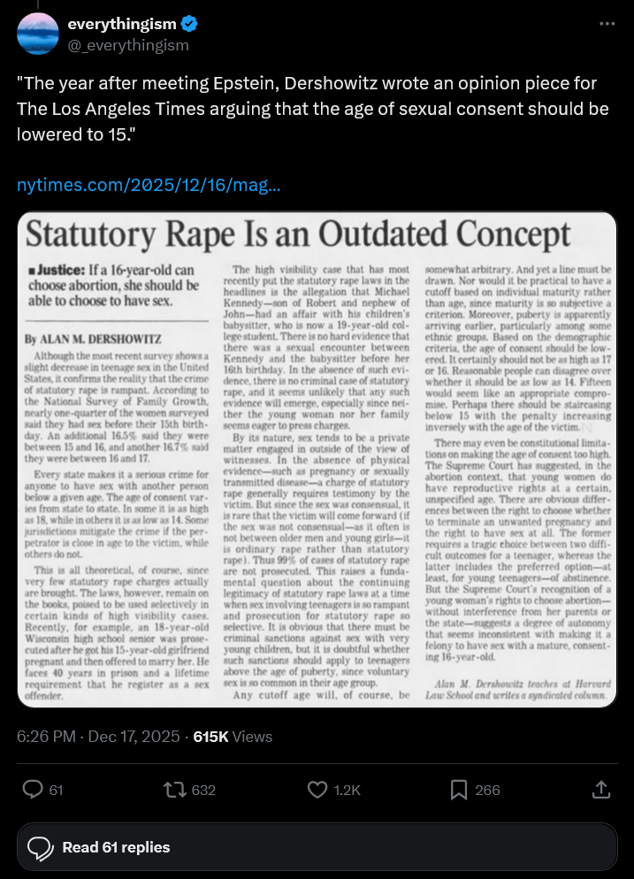 2. Alan Dershowitz seems like the type of guy who could argue that statutory rape on a plane over the ocean in certain areas isn’t a crime because it’s unclear what entity could legally investigate or prosecute.