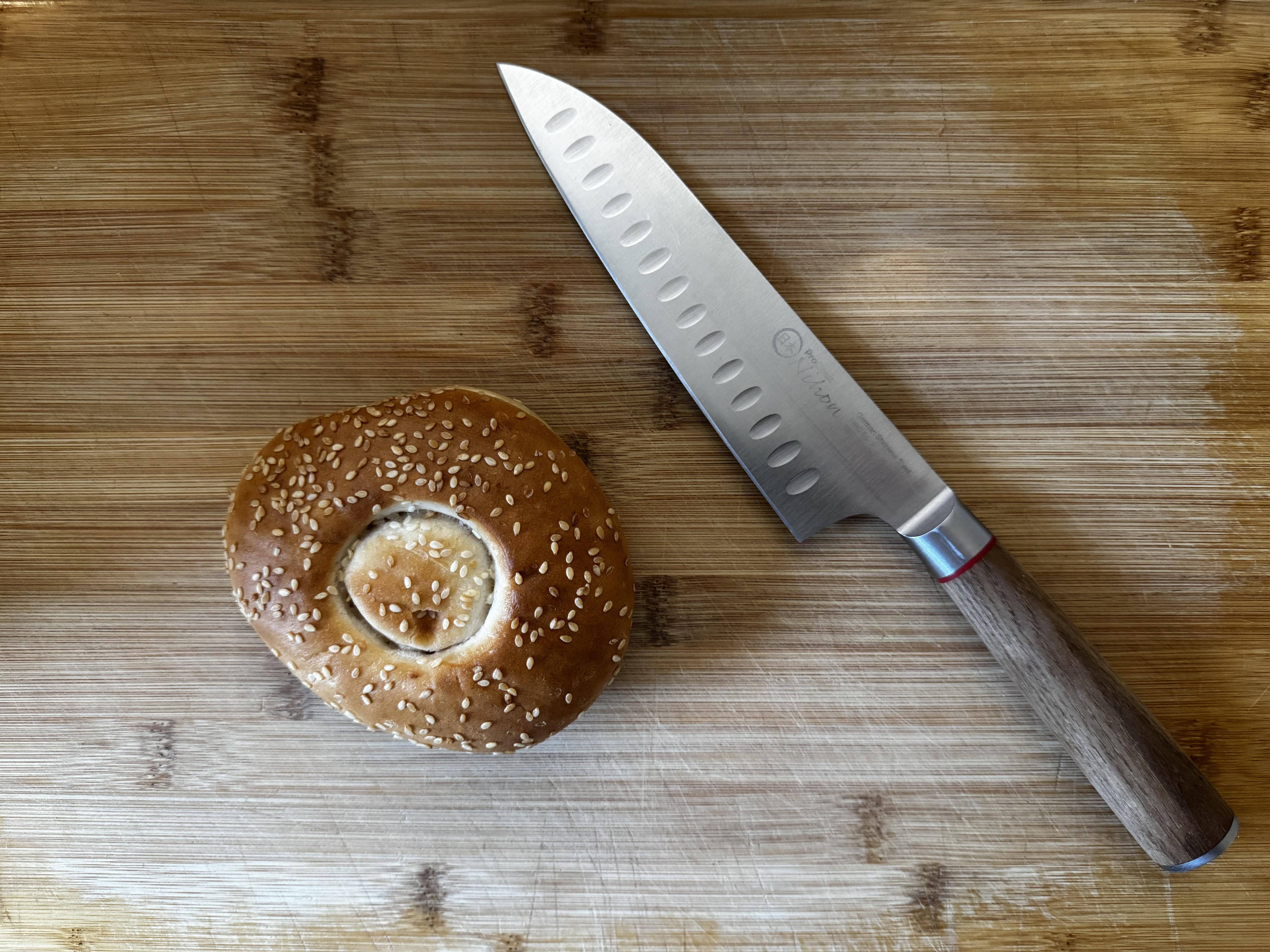 I’m not sure what kind of bagel this is but they’re supposed to be a rolled log that’s closed to make the hole.