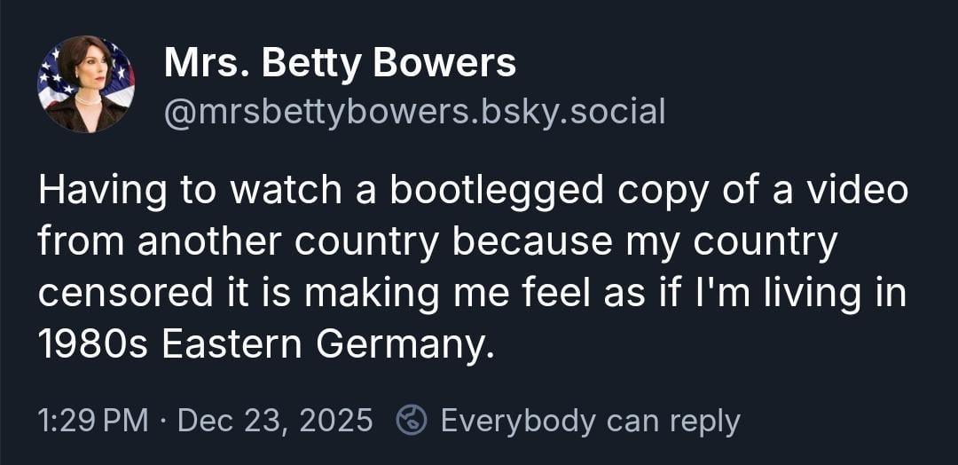 IRespectYouMyFriend on December 24, 2025 1:41 pm No madam, you are in fact in 1930s Germany. Best of luck