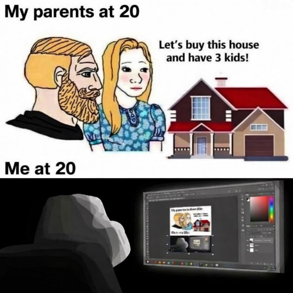 My parents at 20: adulthood. Me at 20: Adobe subscription