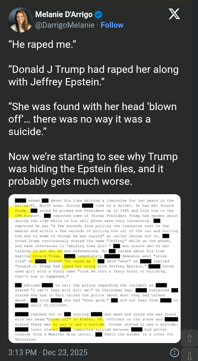 Hate to tell you this but there’s no ‘probably’. Another file describes how Trump watched while a 13-year old’s baby was murdered then tossed into a lake to dispose of the body.