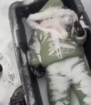 This is how it’s done. We don’t let our kids be covered by snow. Child in this video is clearly in a sled. Maybe OP should post only if he knows what he/she is posting.