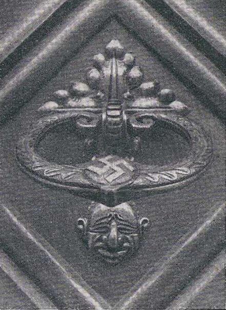 A swastika adorned door knocker to hit the carving of a jewish caricature, Nürnberg, 1938 [441×603] by CyborgSmoker