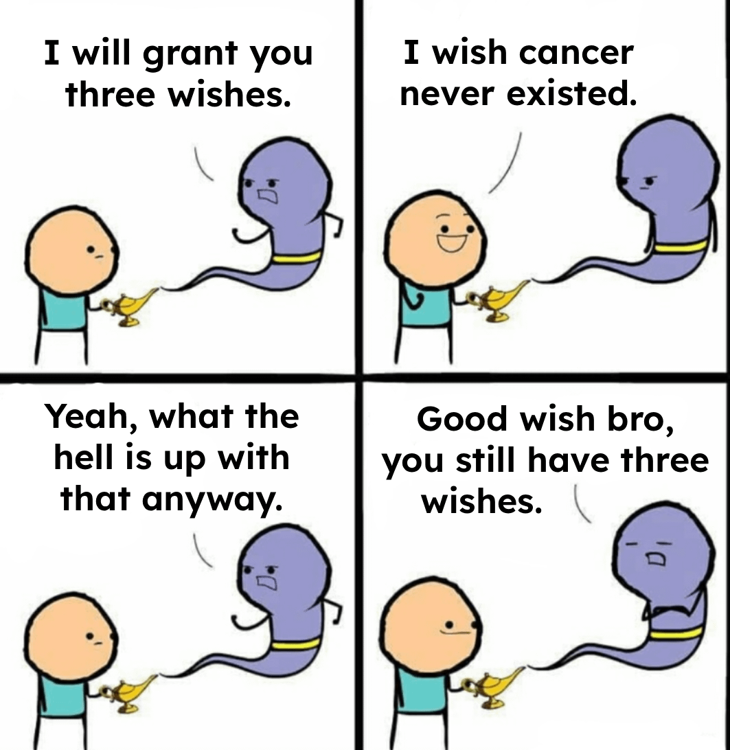 I feel like the genie could put the twist on it of companies also dont die from the “cancer” of unlimited growth
