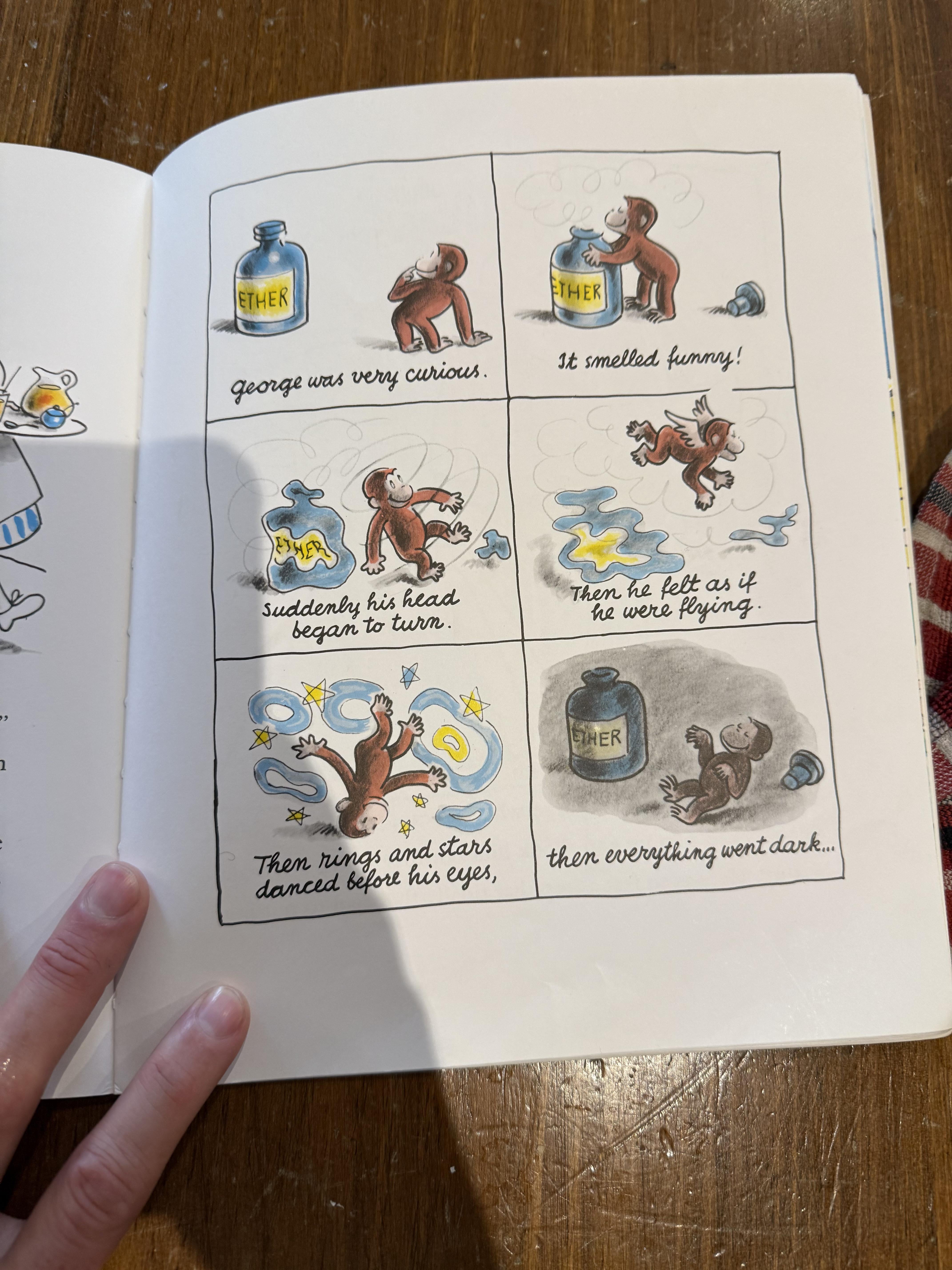 I remember this. Why did The Man in The Yellow Hat have a bottle of ether laying around?