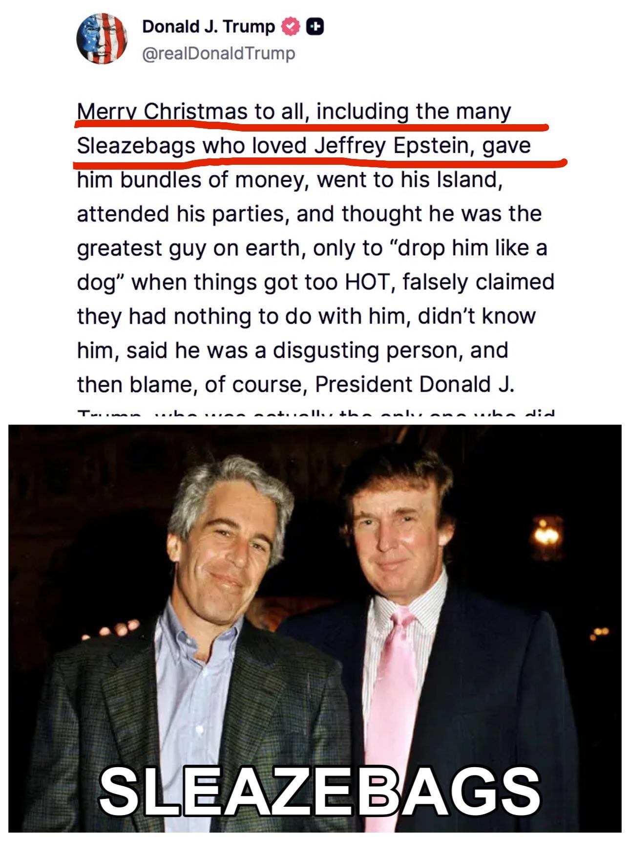 >*Merry Christmas to all, including the many Sleazebags who loved Jeffrey Epstein […] only to ‘drop him like a dog’ when things got too HOT,*
