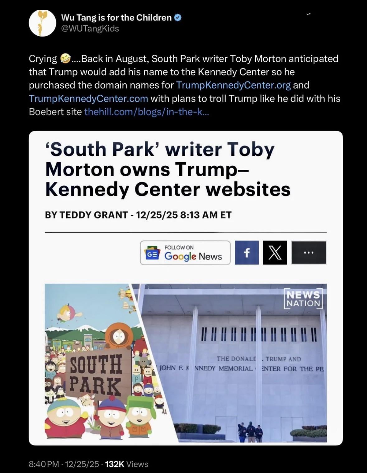 Tyrannical-Botanical on December 26, 2025 12:09 pm It’s going to be fun watching them chisel his name off of there in a couple of years.