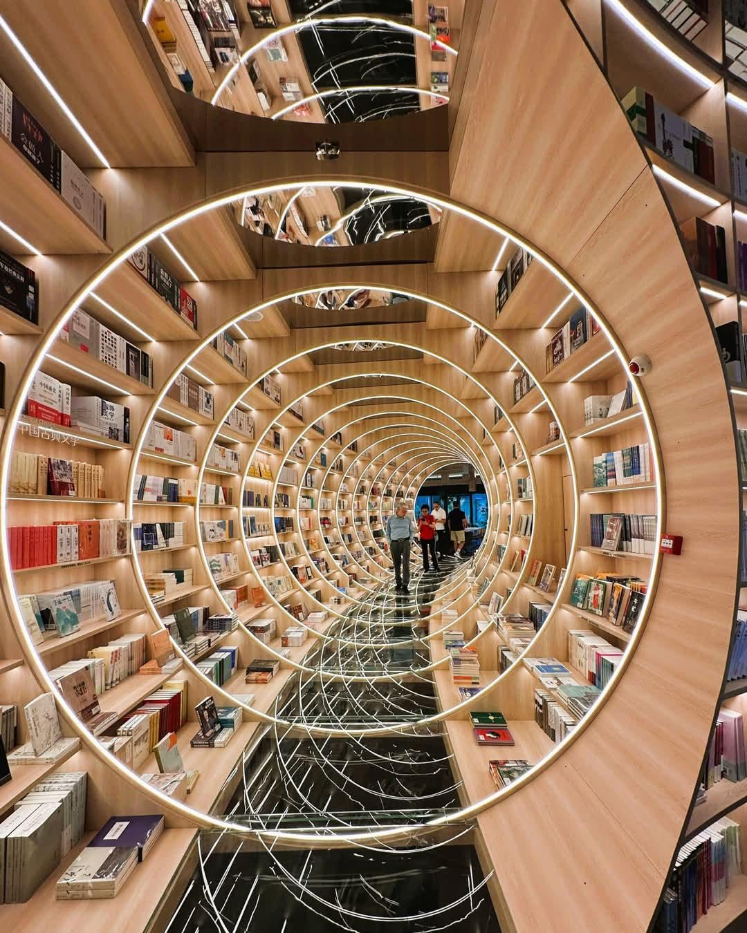 The design is stunning! It’s like stepping into a sci-fi movie set, but with books instead of spaceships. I would love to explore a place like this.