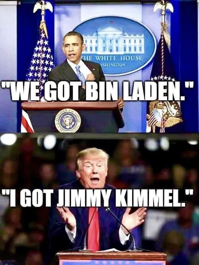 * Kimmel and Colbert both still on the air trolling his ass most every night.