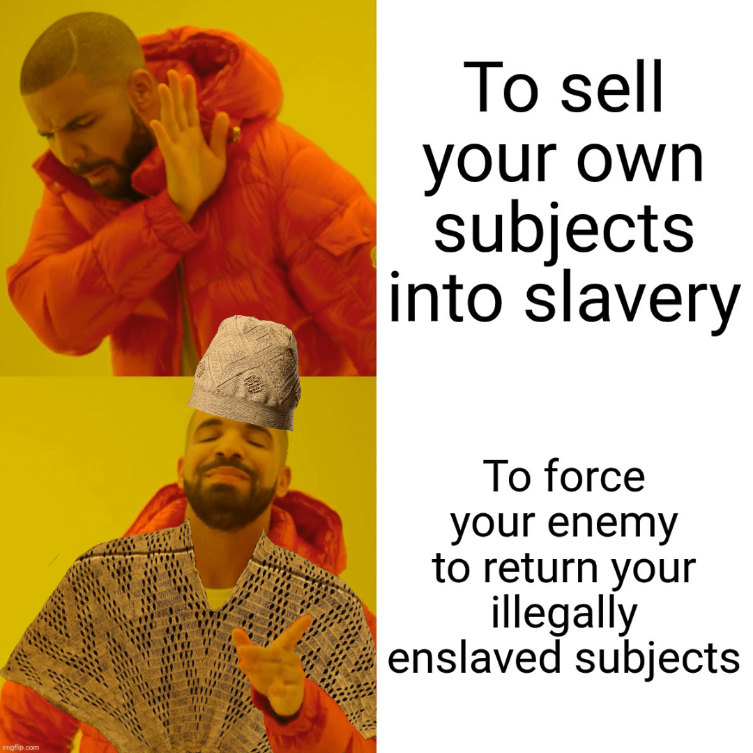 Well, usually your subjects aren’t the ones you’re selling into slavery, it’s the people outside your kingdom who you capture and raid.