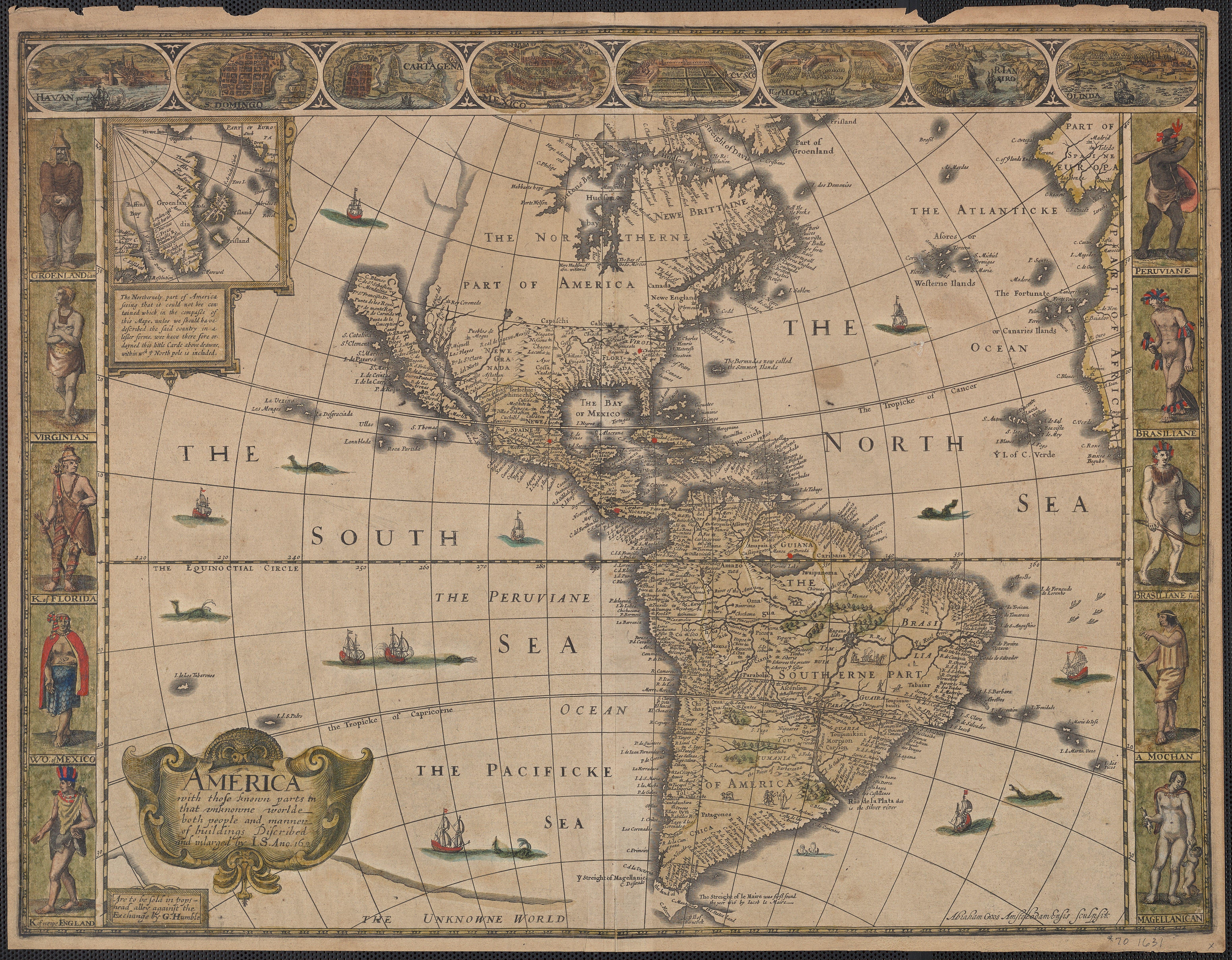John Speed’s map titled ”America with those known parts in that unknowne worlde both people and manner of buildings”,1631.[6203×4833] by alpennys