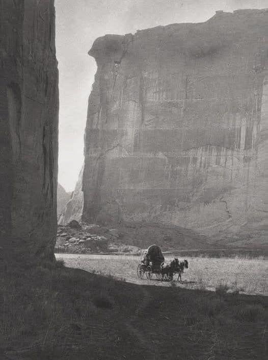 Studied about Americans expanding westward but seeing such a stark photograph, tiny spindly wagon in a such a rough terrain.
