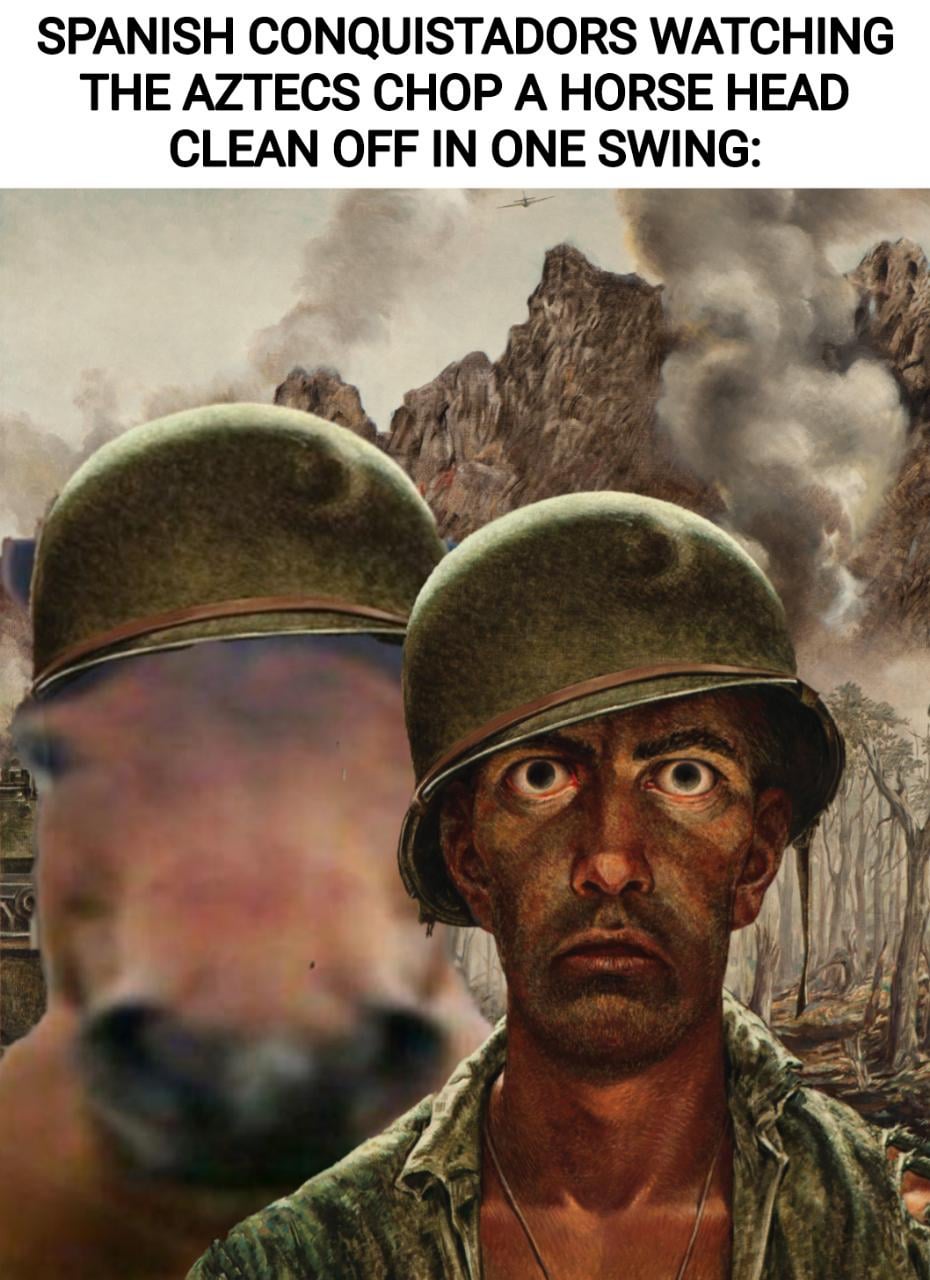 Also the Spanish when they later realized obsidian shatters against metal swords and armor: