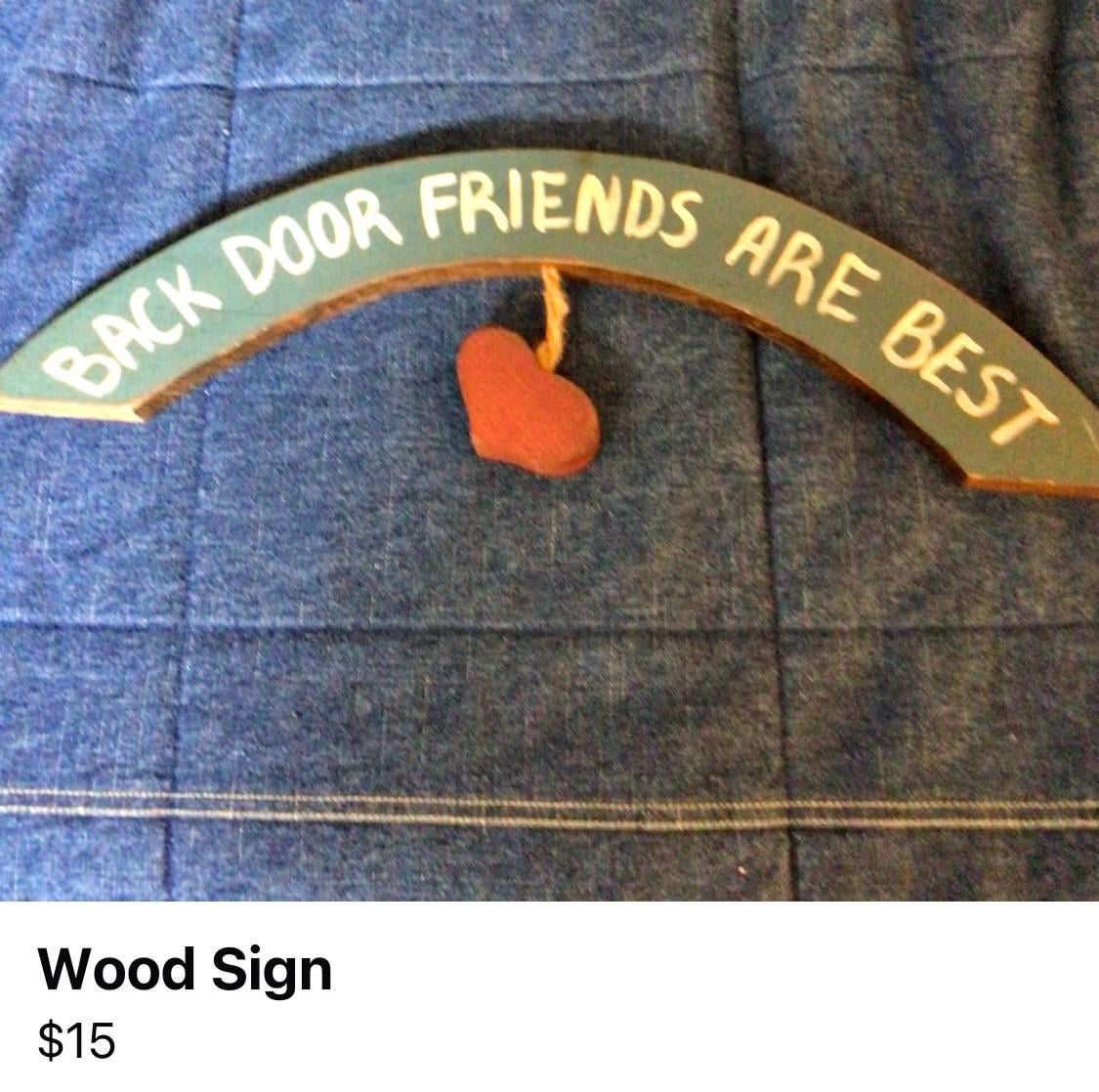 My aunt had a little sign YEARS ago, in the 90’s that said “Back door guests are best” and she never thought anything of it other than the meaning that people that come to your back doors are usually close friends — until my (now) uncle saw it and started laughing