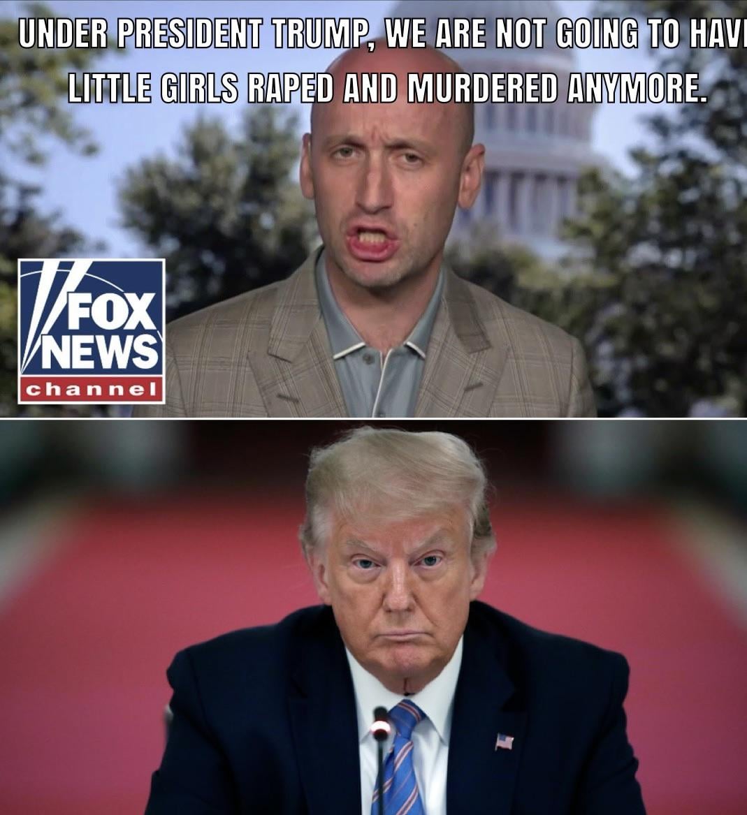 “Under president trump we are not going to have! Little girls raped and murdered, any? More!”