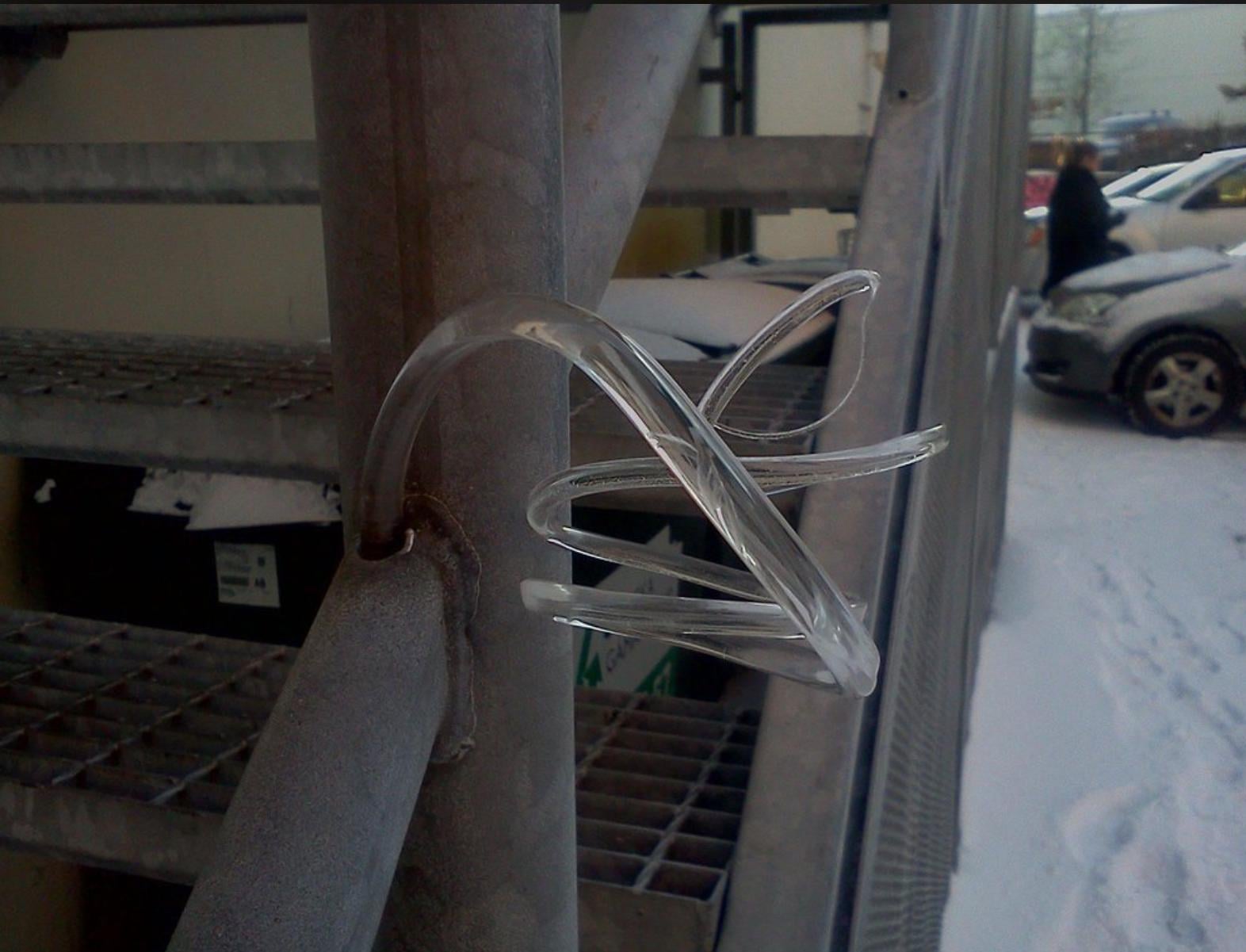 Pretty cool! Reminds me of a pic my wife took of some ice extruding out of an old welding gas tank that had no top. Made a 3 foot diameter loop of ice.