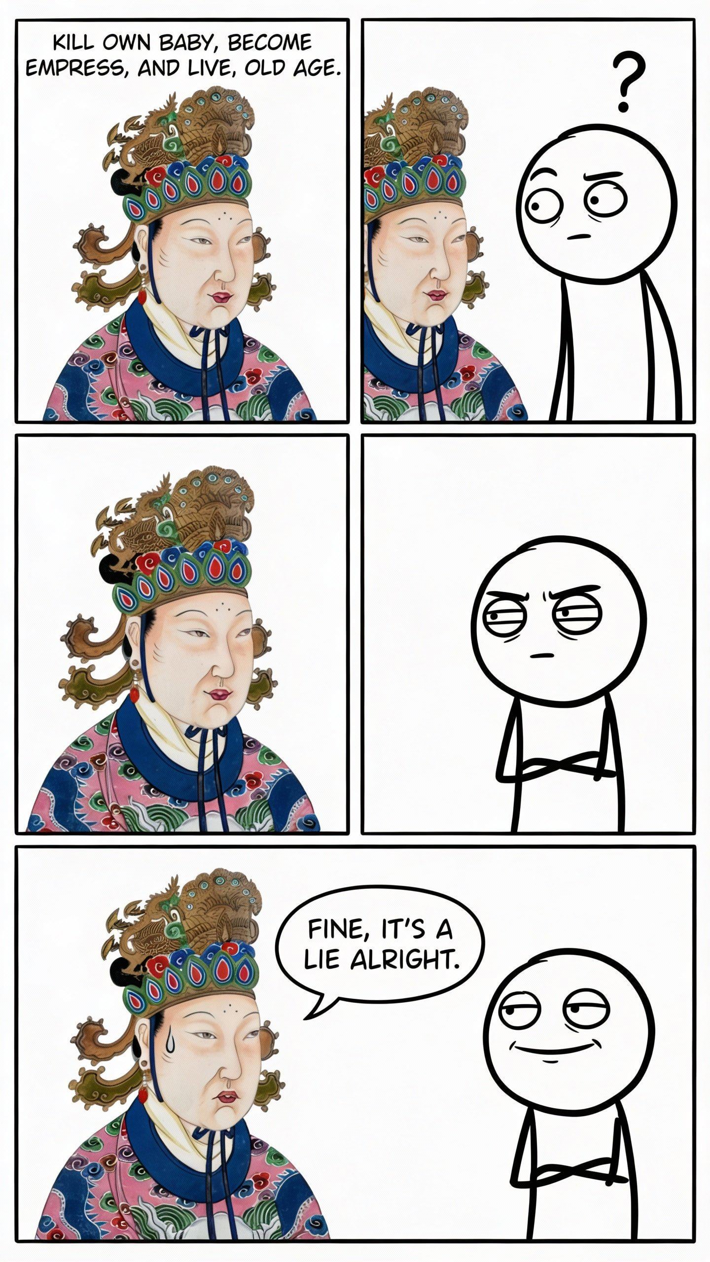 The historians of that time were biased we don’t if it’s true or not mostly because, she was a woman, a buddist and empress from past dynasty…for some reason Chinese historians hate their past rulers to justify their new ruler .