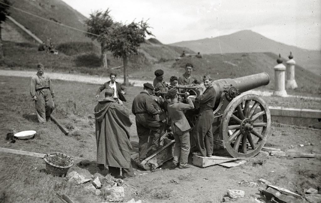 Republican soldiers loading a 21 cm bronze cannon around the area of San Sebastián during the Spanish Civil War (1936-1939). [1024×649] by Patient-Course4635