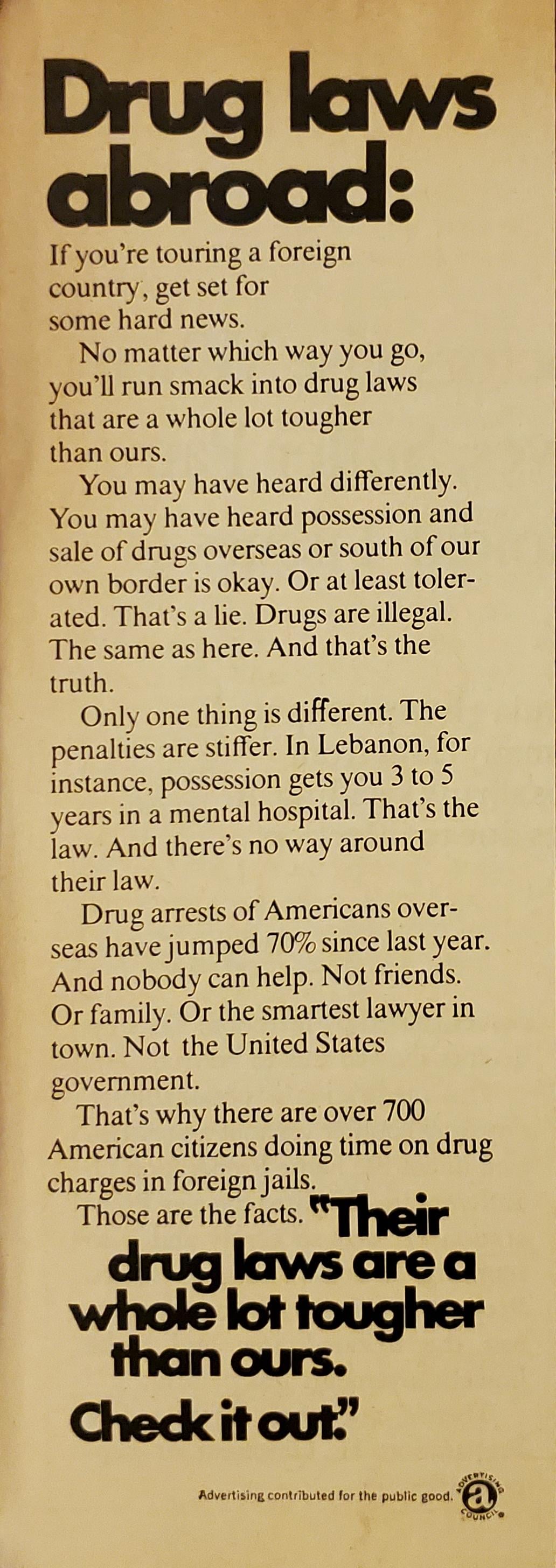 “Dude, I’m so high that I was able to typeset this headline with ALL the letters touching, except for that one spot between ‘a’ and ‘b’ that’s marshing my hello… and are those quote marks backwards, or is everything but the quote marks backwards? Whoa, mirrors are amazing. Anyway, time to send the ad to Reefer Digest!”