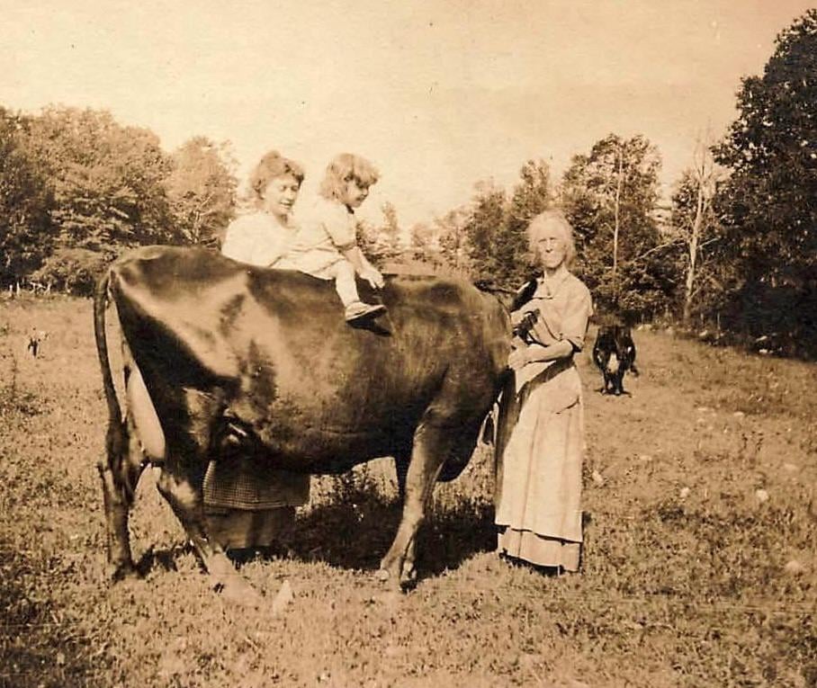Child placed on a cow’s back, 1920s